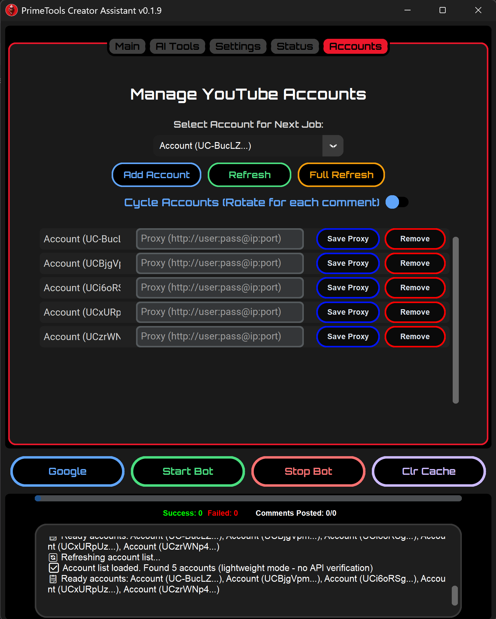 - Multi-Account Support: Manage and rotate between multiple YouTube accounts