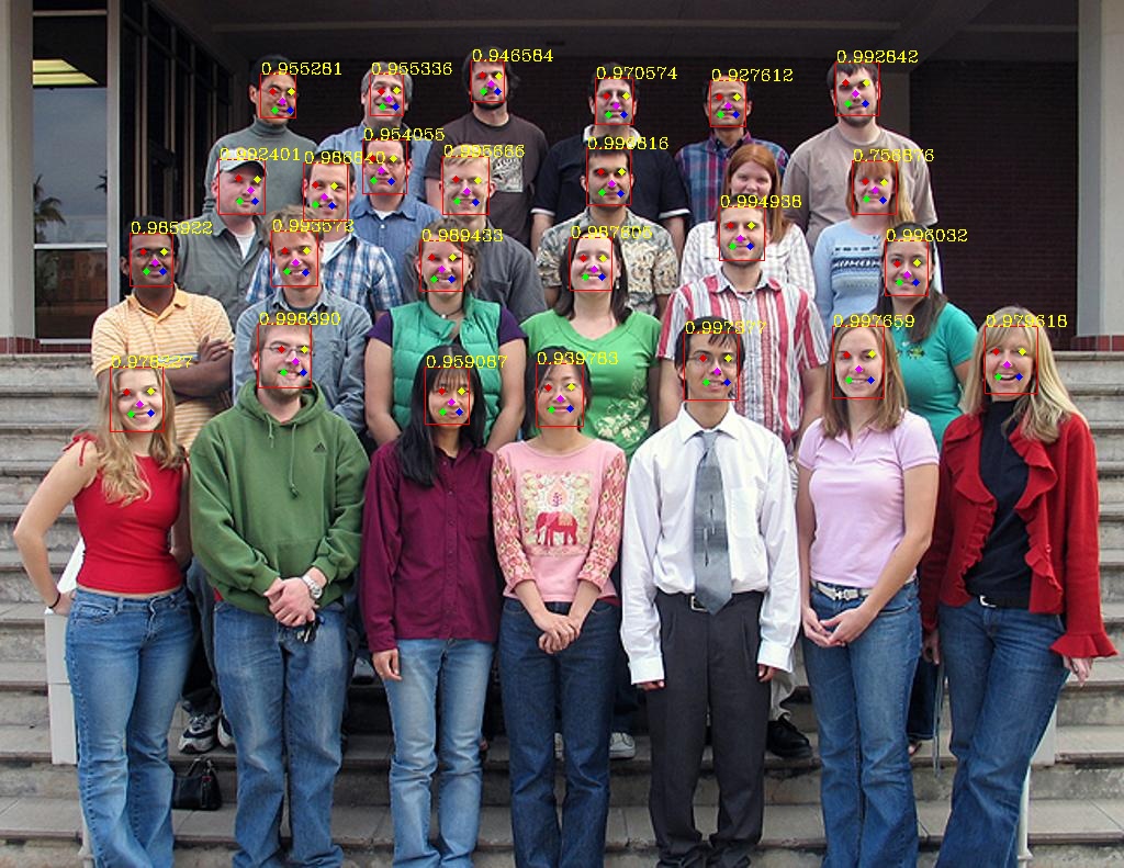 This C ++ application detects faces in a scene. At the same time, the characteristic landmarks are located so that you can use them as input for a face recognition algorithm. (see: Face recognition).
