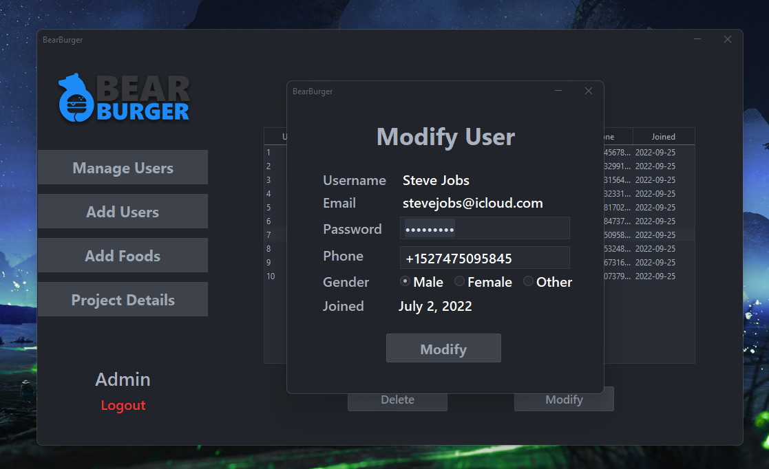 Customers can create accounts, log in to the system, browse foods, make purchases, and do many other things. There are also various features available for administrators. The application is essentially separated into two roles-