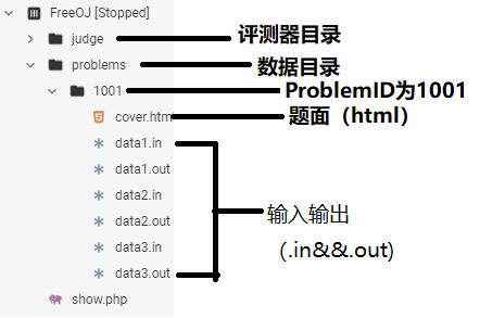 一个OJ只有IDE是不行的,还需要测试数据和题面展示。 测试数据的摆放方式是这样的: