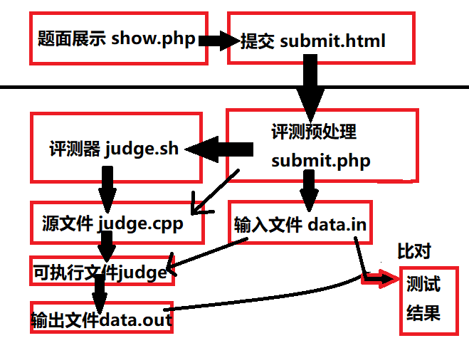 - submit.php : 用于创建judge.cpp和data.in并在评测后返回结果
