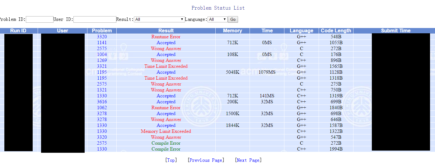 在status.php被调用时,扫描/submissions下的每一个评测记录,根据以上法则判断评测结果输出。