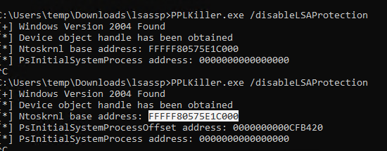 when I run the tool it says initial system process is 0. I have also added to show offset address so not sure how line 292