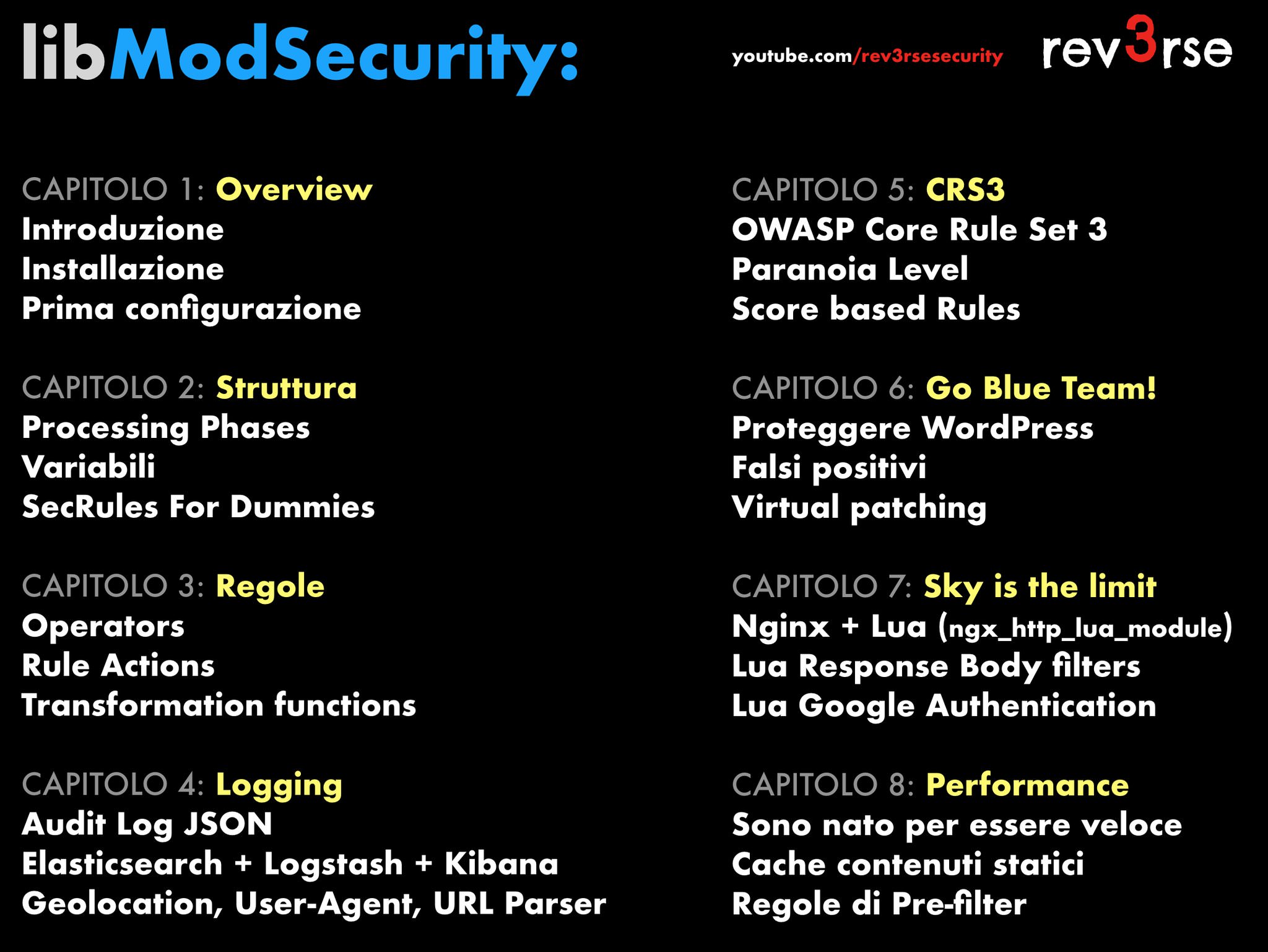 Processing phases, Variabili e SecRule for Dummies: https://youtu.be/oS5zEkzdmLE