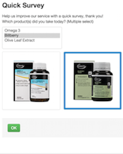 First, users should login/register our application. When users login in our applicaton, they need to input their user name and password. After verification, users can login into our system and start to test cogonition. If the user is a new customer, he or she should register first and provide us with some personal data, like the central picture shows. After users login, the application will pop up a survey window to collect products users may use every day.