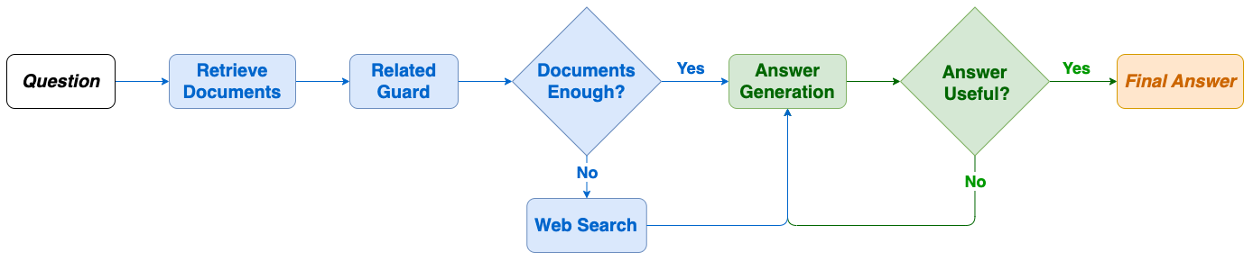 RAG Agent 是一款結合檢索增強生成(Retrieval-Augmented Generation, RAG)與大型語言模型(Large Language Model, LLM)的智慧代理(AI Agent),具備網路搜尋、私有知識檢索與迭代優化回答的能力。