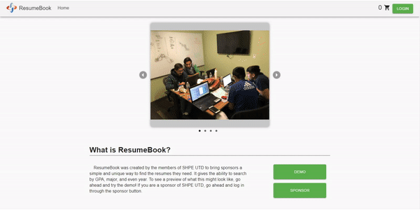 git clone https://github.com/SHPE-UTDallas/ResumeBook.git - Make sure you have version 12 of node.js installed
