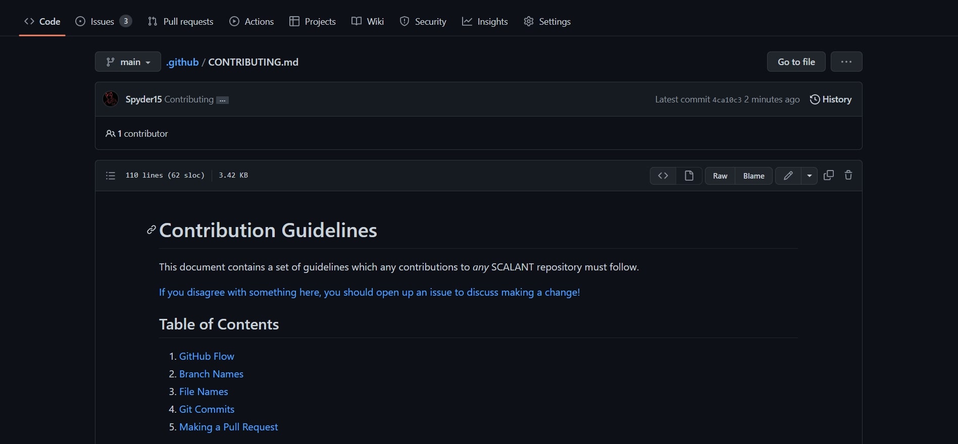 This document contains a set of guidelines which any contributions to any SCALANT repository must follow.