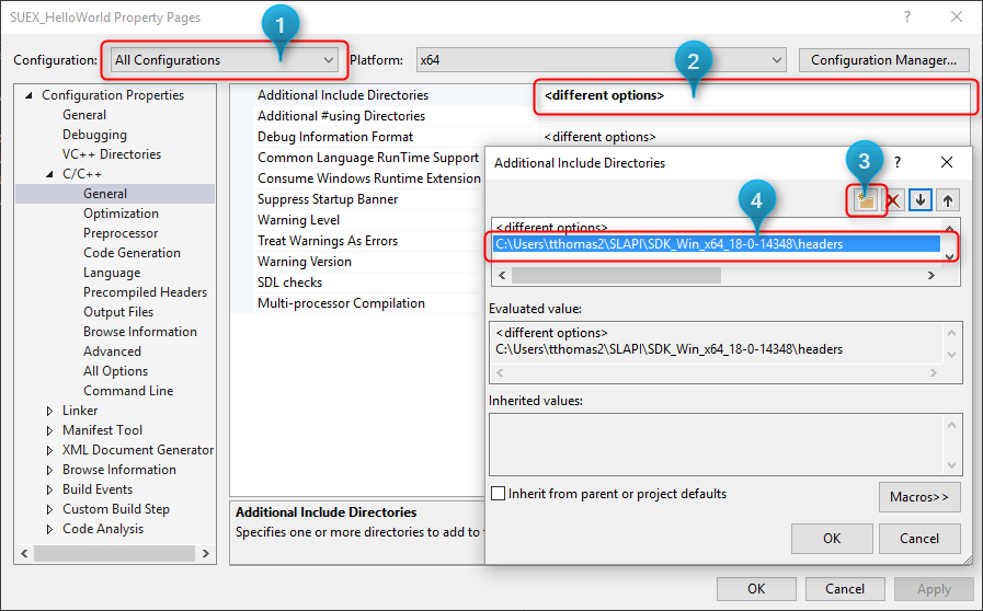 - Open the Properties for the SUEX_HelloWorld project.
