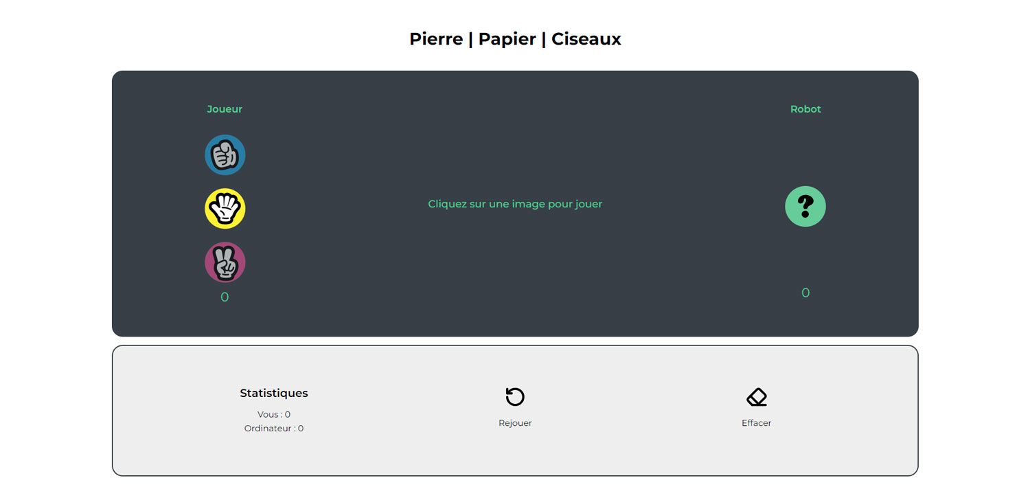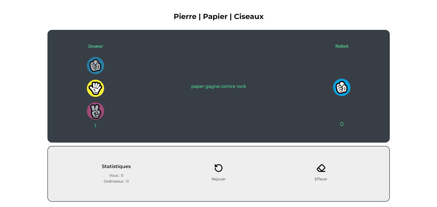 Rock/Paper/Scissors Game created during my training at Interface3 – Brussels