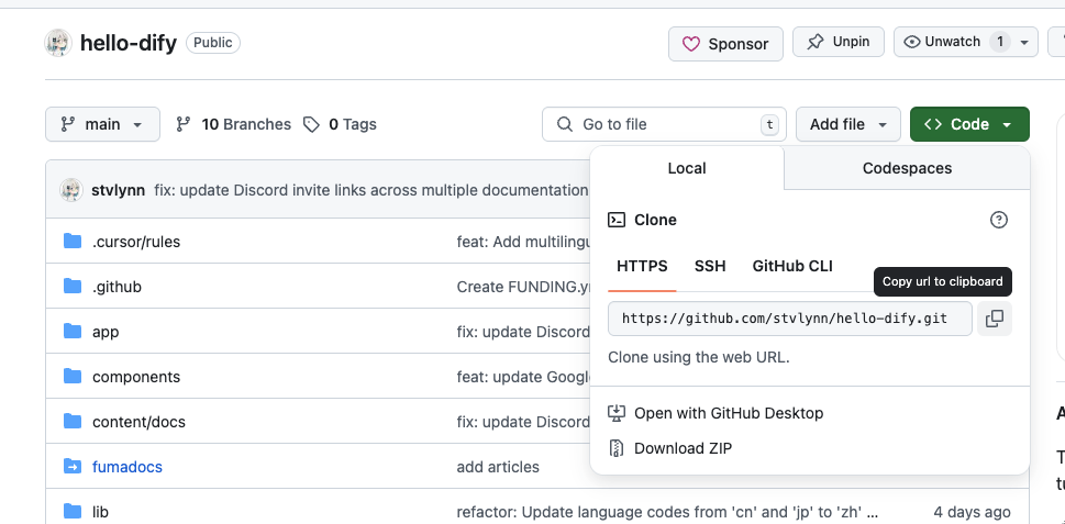 } href="https://github.com/stvlynn/hello-adp/fork" title="Fork Repository" > Create your own copy of Hello ADP.After forking, copy the git URL for your repository—for example https://github.com/<your-username>/hello-adp.git.