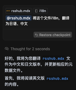 Summon it with @i18n.mdc inside Cursor. A sample prompt: