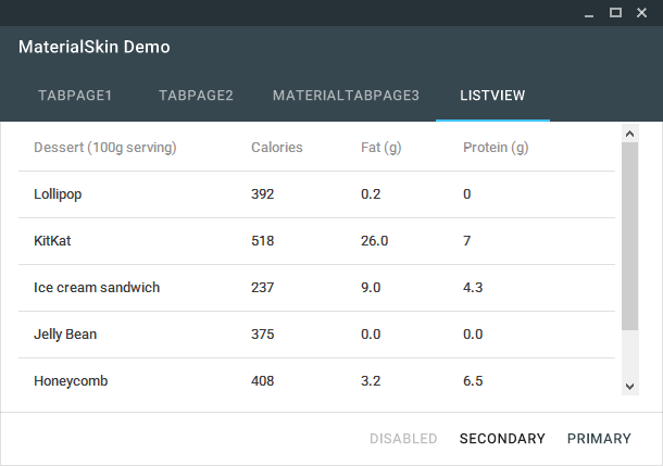 A simple demo interface with MaterialSkin components.