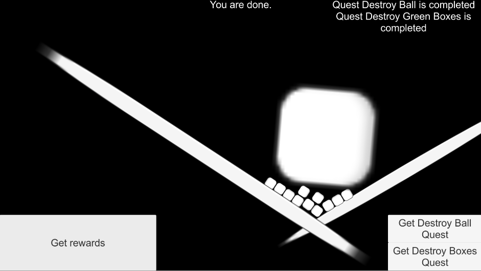 After the quest's goals are completed the quest awaits rewards. During gameplay the developer can choose when to give the rewards for the player and complete the quest. Rewards inherit the base class Reward which has a function that rewards the player in a specific way.