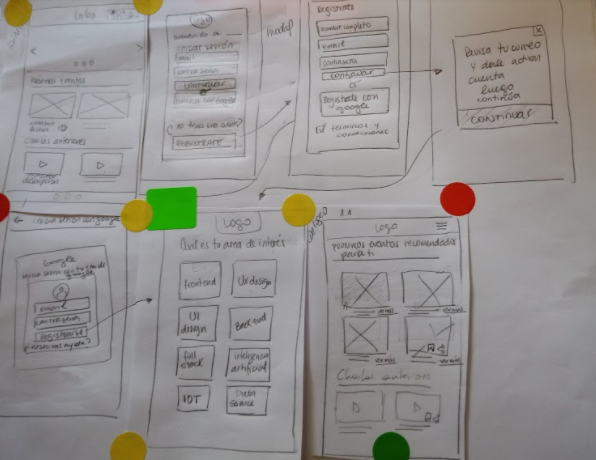 El Sketch lo fuimos afinando a medida que realizamos diferentes testeos para lograr percibir cuáles son los momentos más débiles en la interacción del usuario con la plataforma.