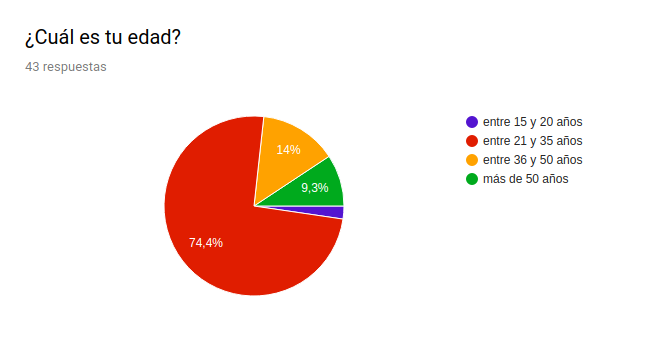 Se registró un total de 43 usuarios durante la encuesta realizada, donde percibimos que: