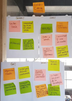Luego con los resultados de la misma encuesta creamos un “golden circle” para entender decisiones clave que determinan cómo será nuestro producto y que es lo que ofrecerá.