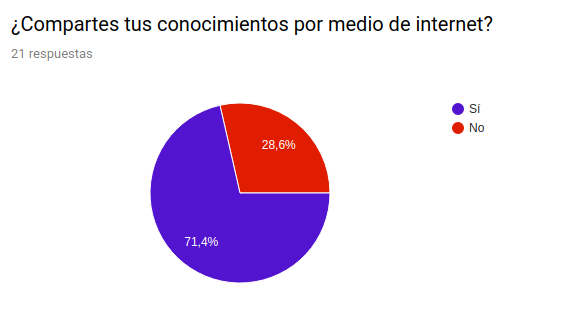 El 80% comparte sus conocimientos por internet. Dentro de los medios disponibles de aprendizaje online la mayoría prefiere youtube, esto significa que tenemos una oportunidad de mercado en los usuarios que prefieren plataformas audiovisuales. Adicionalmente un porcentaje cercano al 50% de los usuarios estudian por internet. Los usuarios también estudian u obtienen sus conocimientos de cursos online eventos, meetups y en workshops.