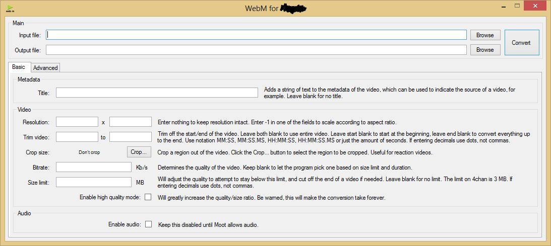 WebM for bakas. Basically, a wrapper around ffmpeg made for converting videos to WebM without having to use the command line.