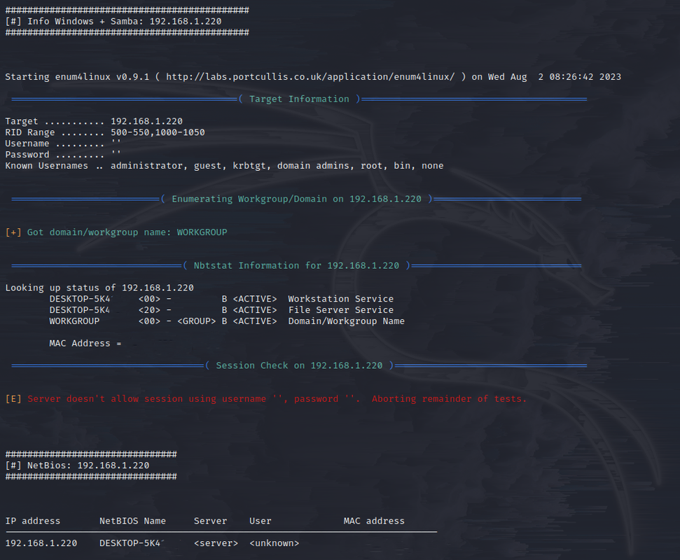 [3] Si dentro de la opción ([4] Escaneo de Todos los Dispositivos de la Red Local) en el apartado ([6] Buscar Servicios [HTTP, SMB, FTP, SSH,.]) se queda pillado, solo espere 3 minutos, esto ocurre por un error con una de las herramientas y está volcando la salida incorrecta al segundo plano y la Información correcta la está lanzando por terminal.