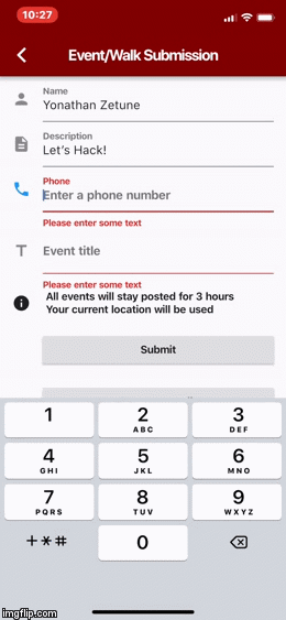 All of the calls are made directly to Google's Firestore database to allow for quick updates. In addition, users have the option to submit a simple form for either requesting a walk or sending out a meeting time/event. The form takes in several credentials and displays them on the map when the user clicks on one of the markers. From there, the person who posted the event can be contacted for further information and details.