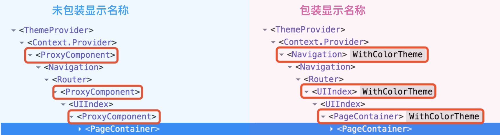 上面这个雏形存在几个问题,首先,我们没有为 ProxyComponent 包装显示名称,因此,为其加上: