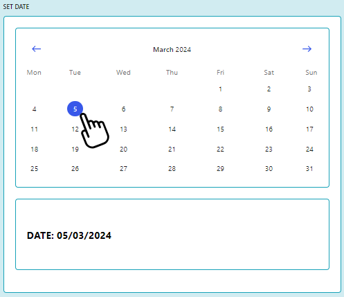The date of the block. It's a date picker. Just click on the input and select the date. You you'll see a calendar to help you pick the date. Once you select the date, it will be displayed in the input.