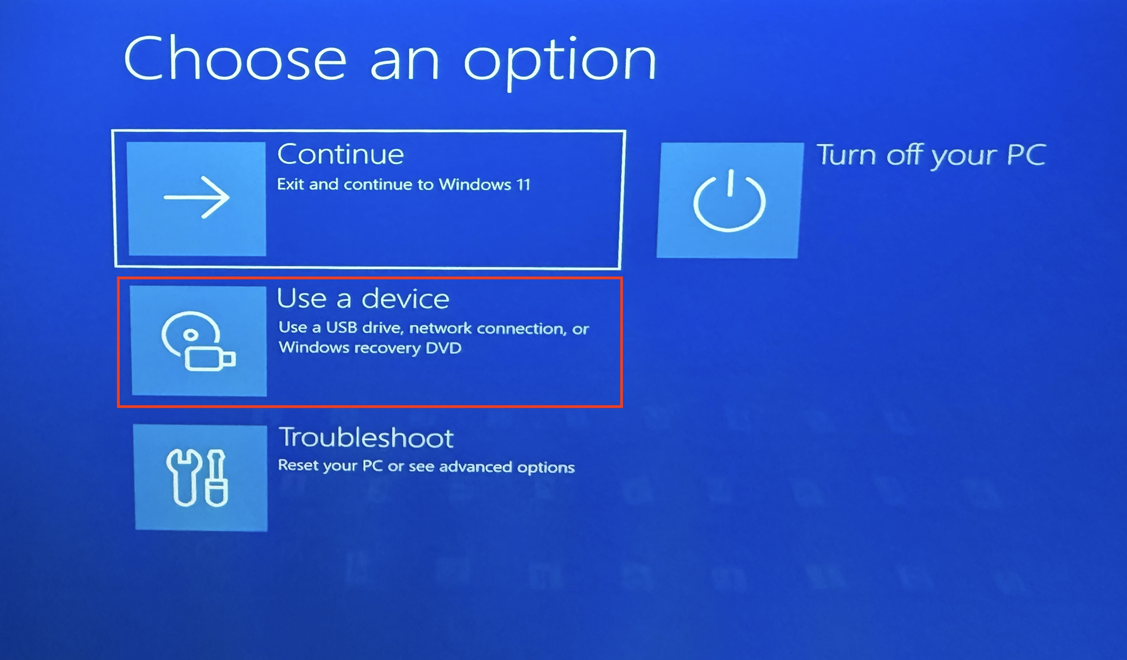 The menu will ask you to Choose An Option. Use the cursor keys to select Use A Device.