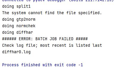 At first I thought the problem was with the command "subcprocess.call" in SplitCommodities.py line 19. But the call itself seems to run fine. It is msplitbat.bat that is doing something weird.