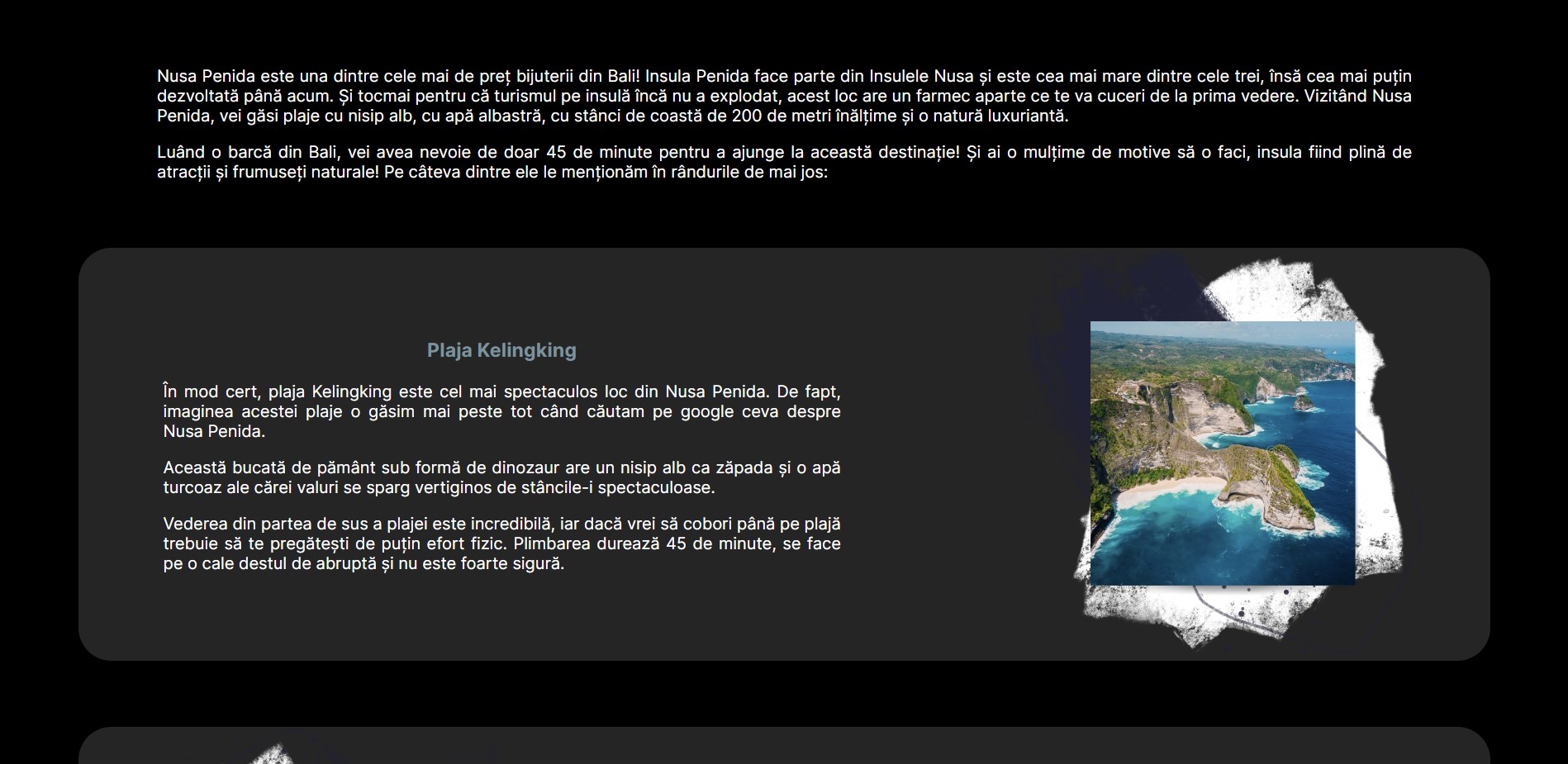 I have attached some pictures below to give you a glimpse of the content and design of my website. ( If you want to see more, you can access the website on https://bie24.github.io/Proiect-HTML-CSS/ )