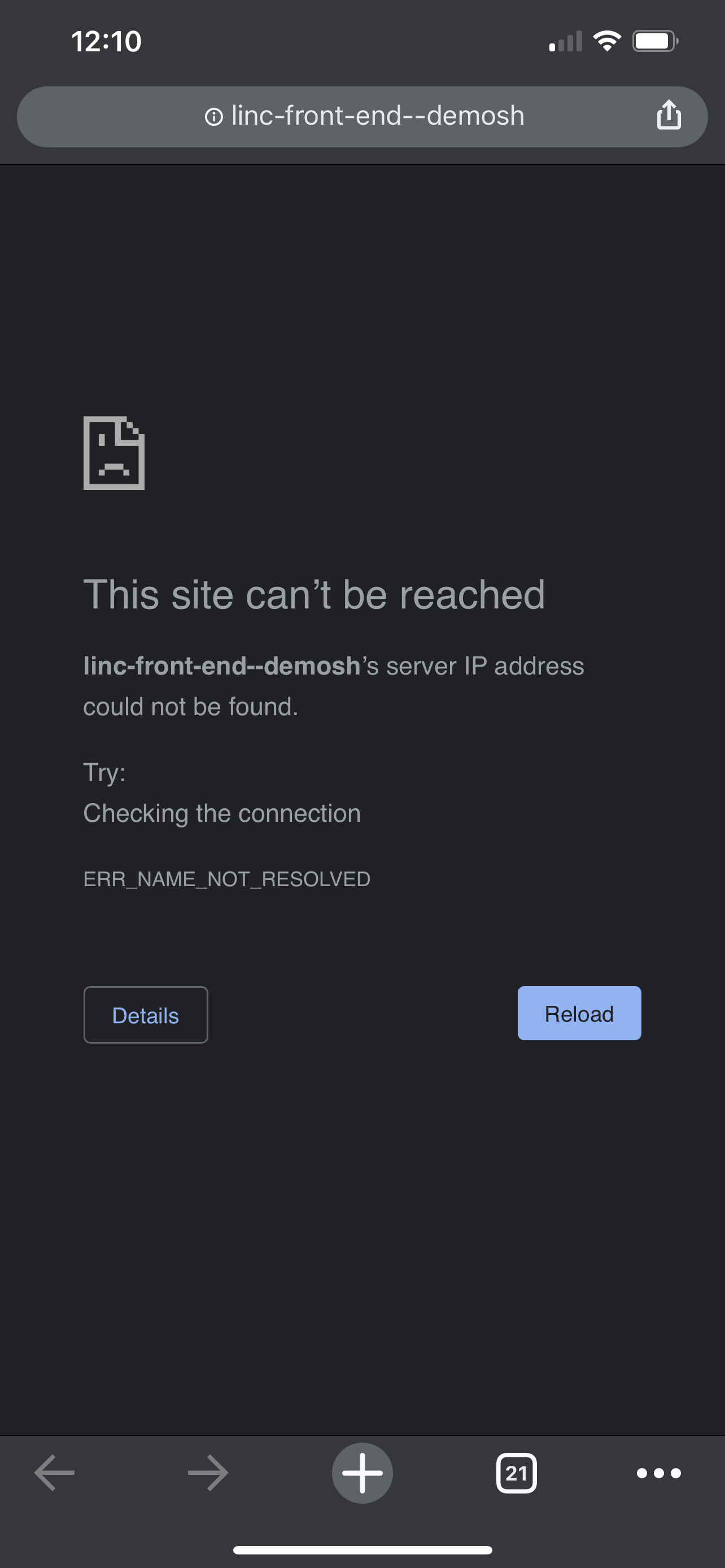 linc.shsite, theLive Demolink in the footer doesn't resolve. It appears to be a redirect issue, most likely a typo somewhere, as the final URL it brings the client to ishttps://linc-front-end--demosh/[...].To Reproduce