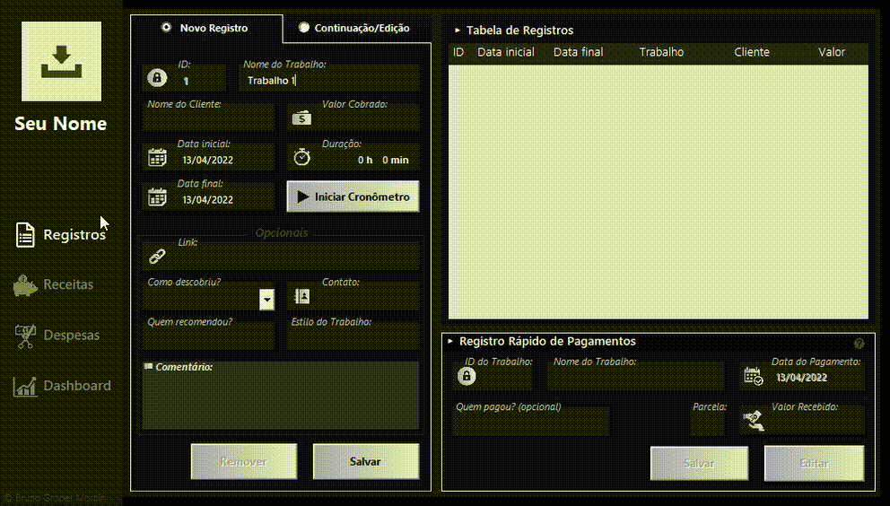 A VBA form project created for personal management facing freelancer profession