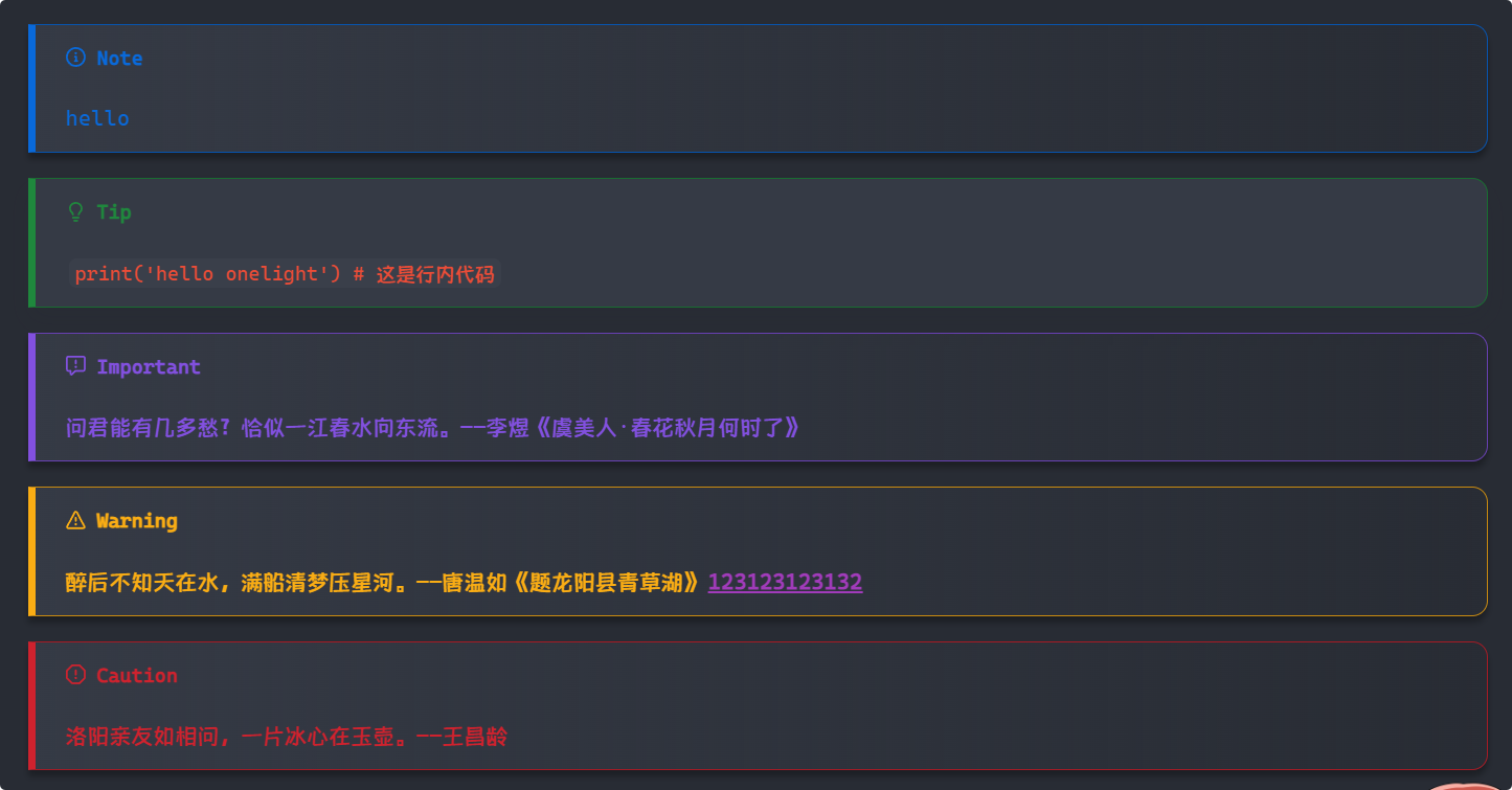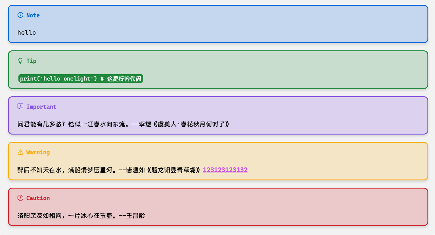/* 引用块,警告框样式 依次为 原样式 默认*/