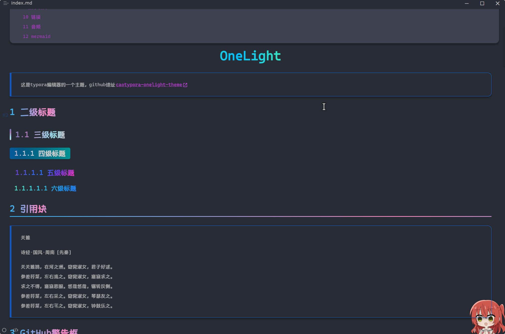 - 重启Typora然后在菜单栏切换主题,大功告成