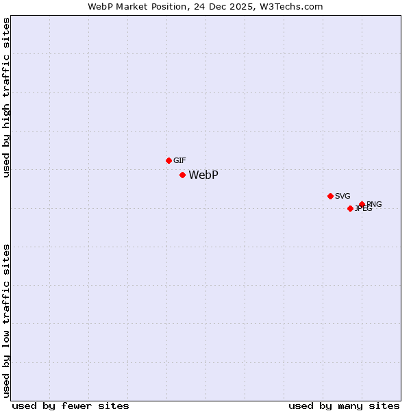 Talking about webp, this file format is not that new, it was realeased in 2010, and yet it's not popular. Actually as pointed by this survey even after more than 10 years after the realease webp is only used by less than 2% of the websites...