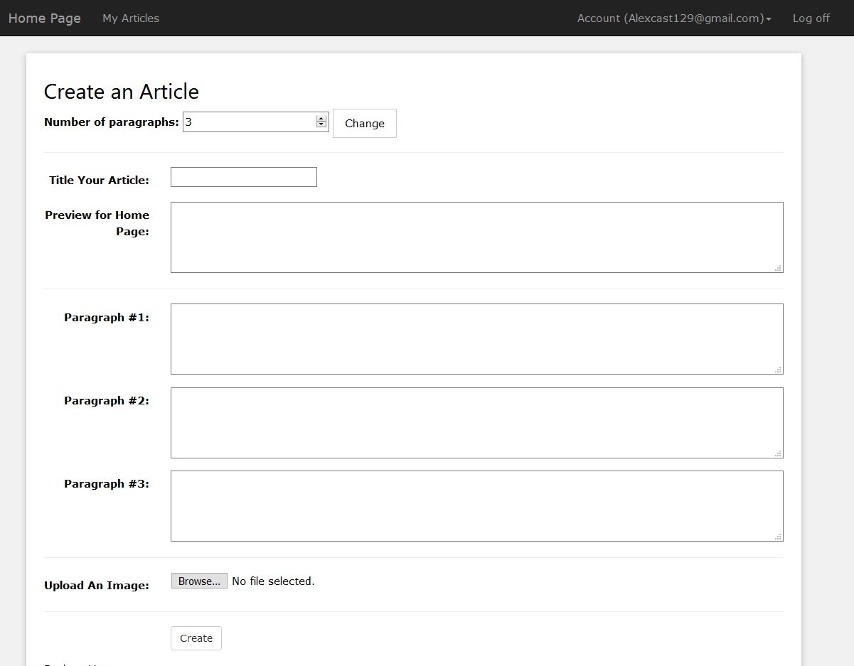 an optional image, and any number of paragraphs up to 25. Articles can be commented on by other users.