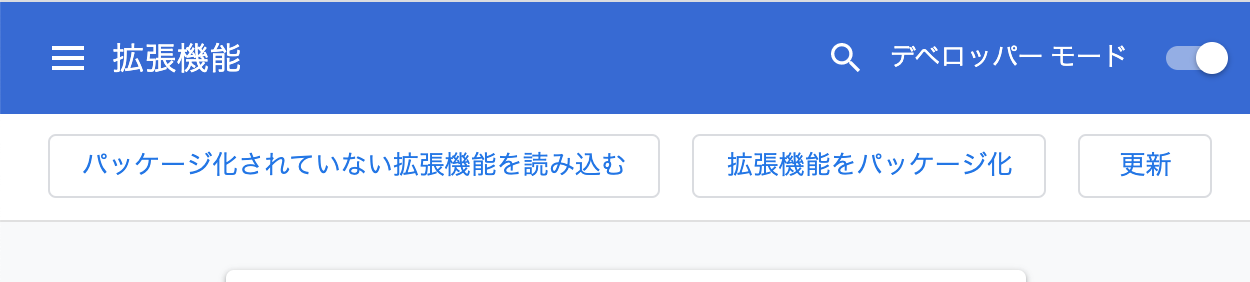 そうすると,上の画像のように「パッケージ化されていない拡張機能を読み込む」というボタンが出てくるのでボタンを押し,ZIPファイルを展開したフォルダを指定してください。