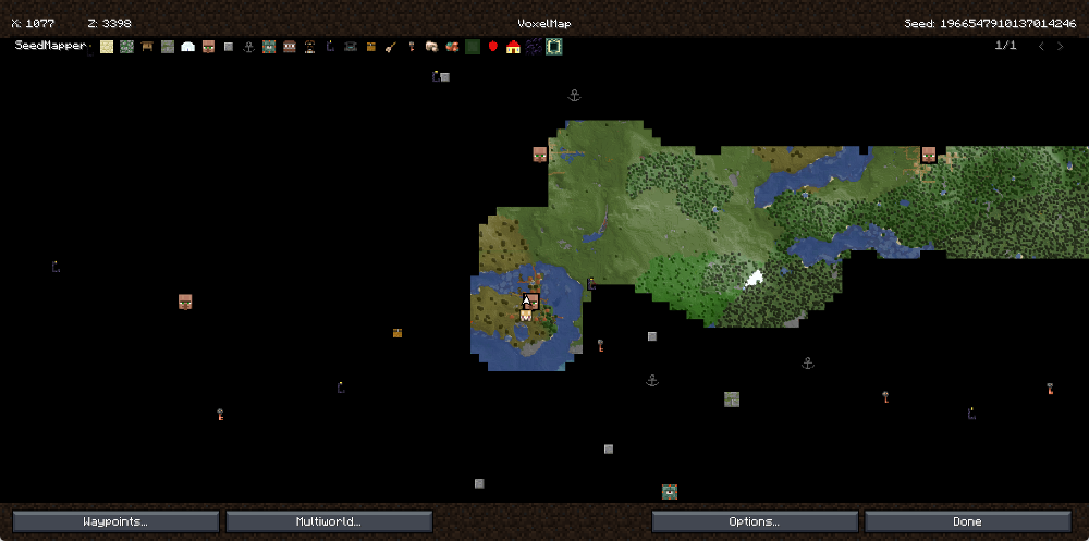 This fork combines VoxelMap's minimap and world map systems with SeedMapper's locating and analysis features in a single mod.