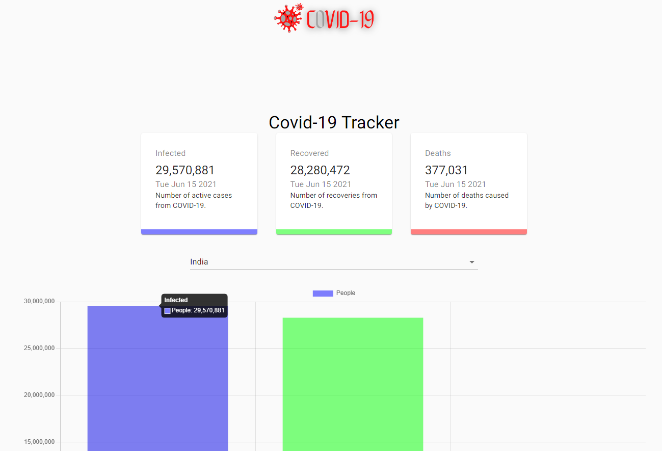 - Provides Real-time updates along with the Chart Js to display a Bar Chart corresponding to the fetched data through API call.