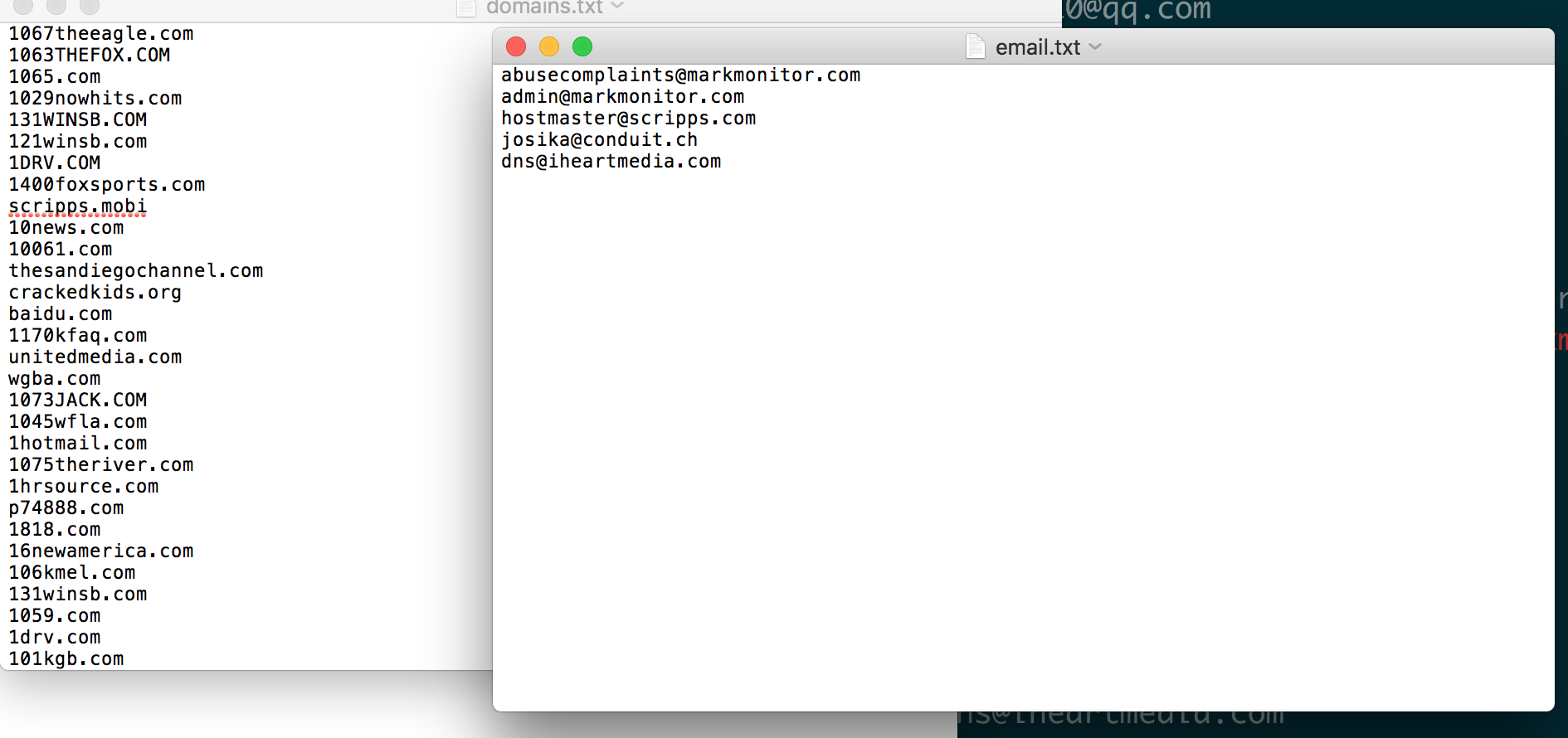 | |---通过域名查询whois的邮箱,注册人,手机号。