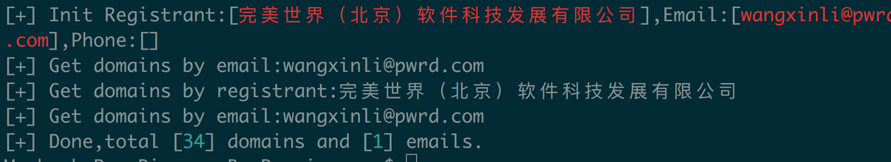| |---把通过手机号和注册人反查得到的邮箱再进行邮箱反查获取相关域名。