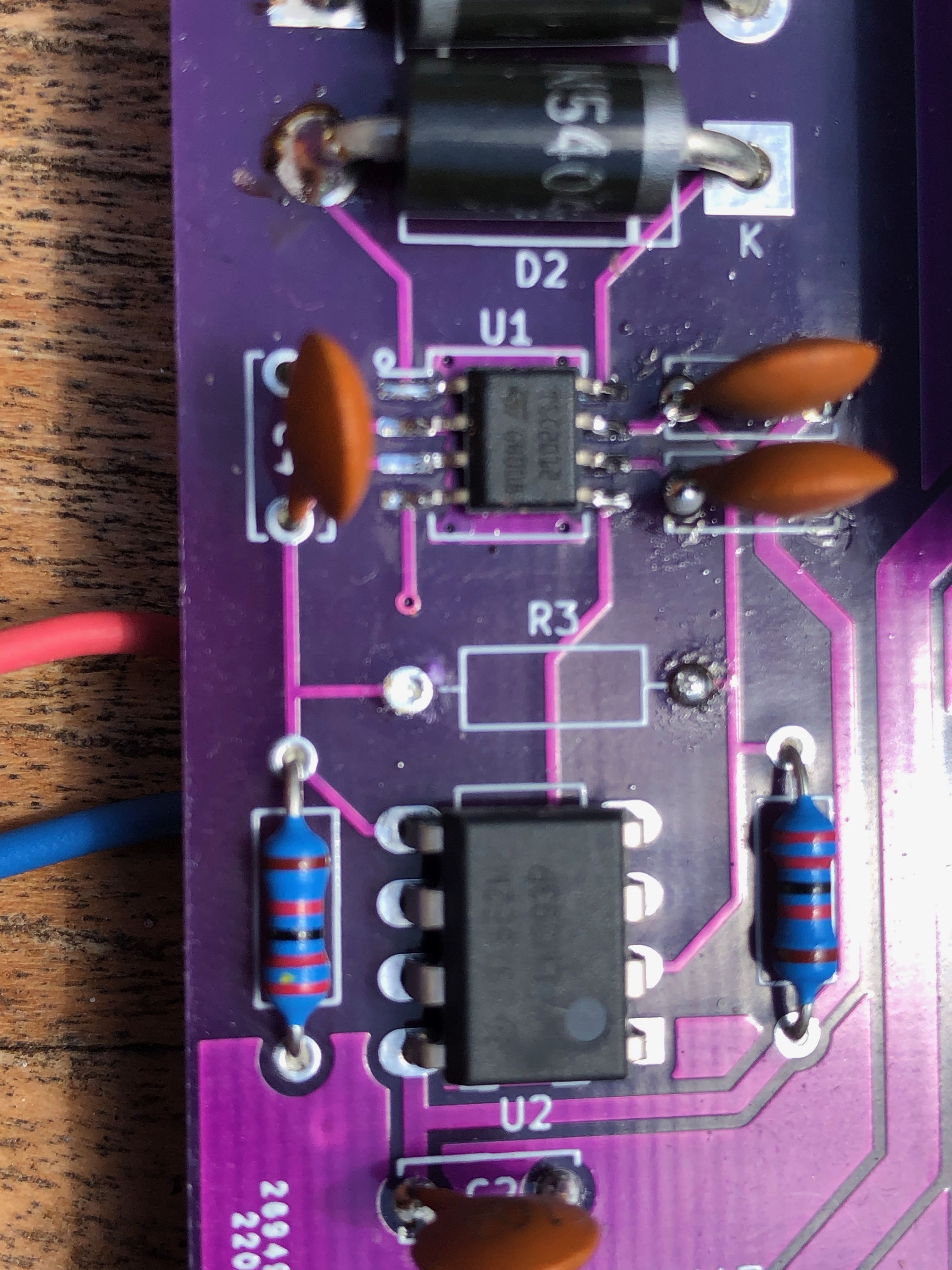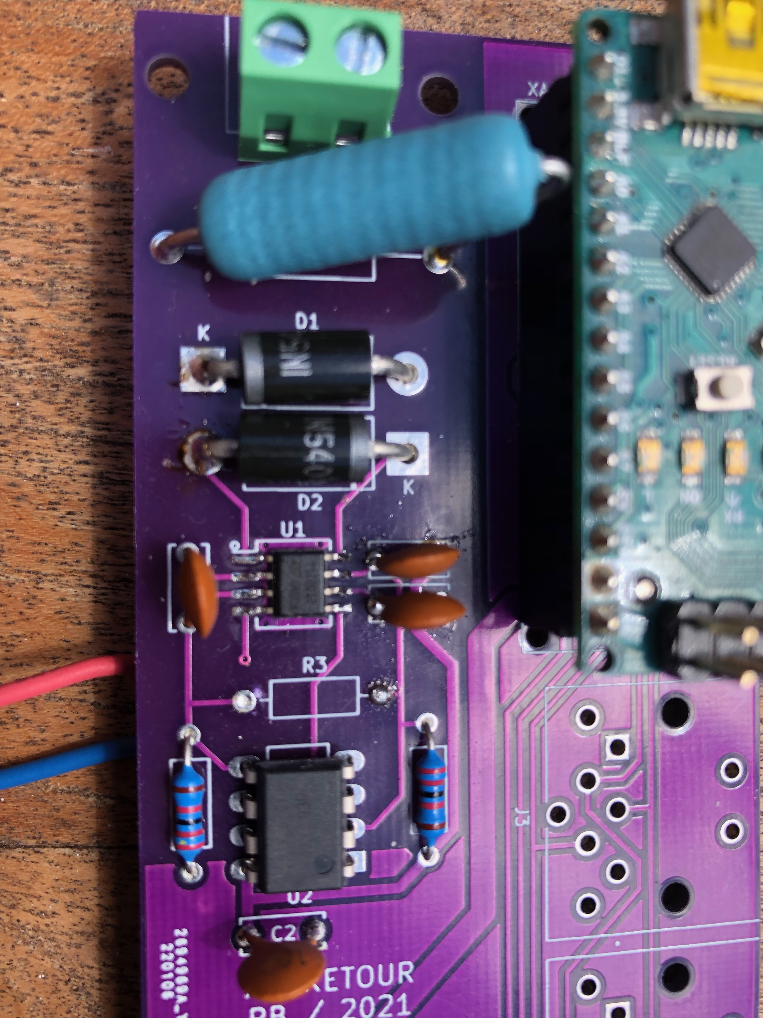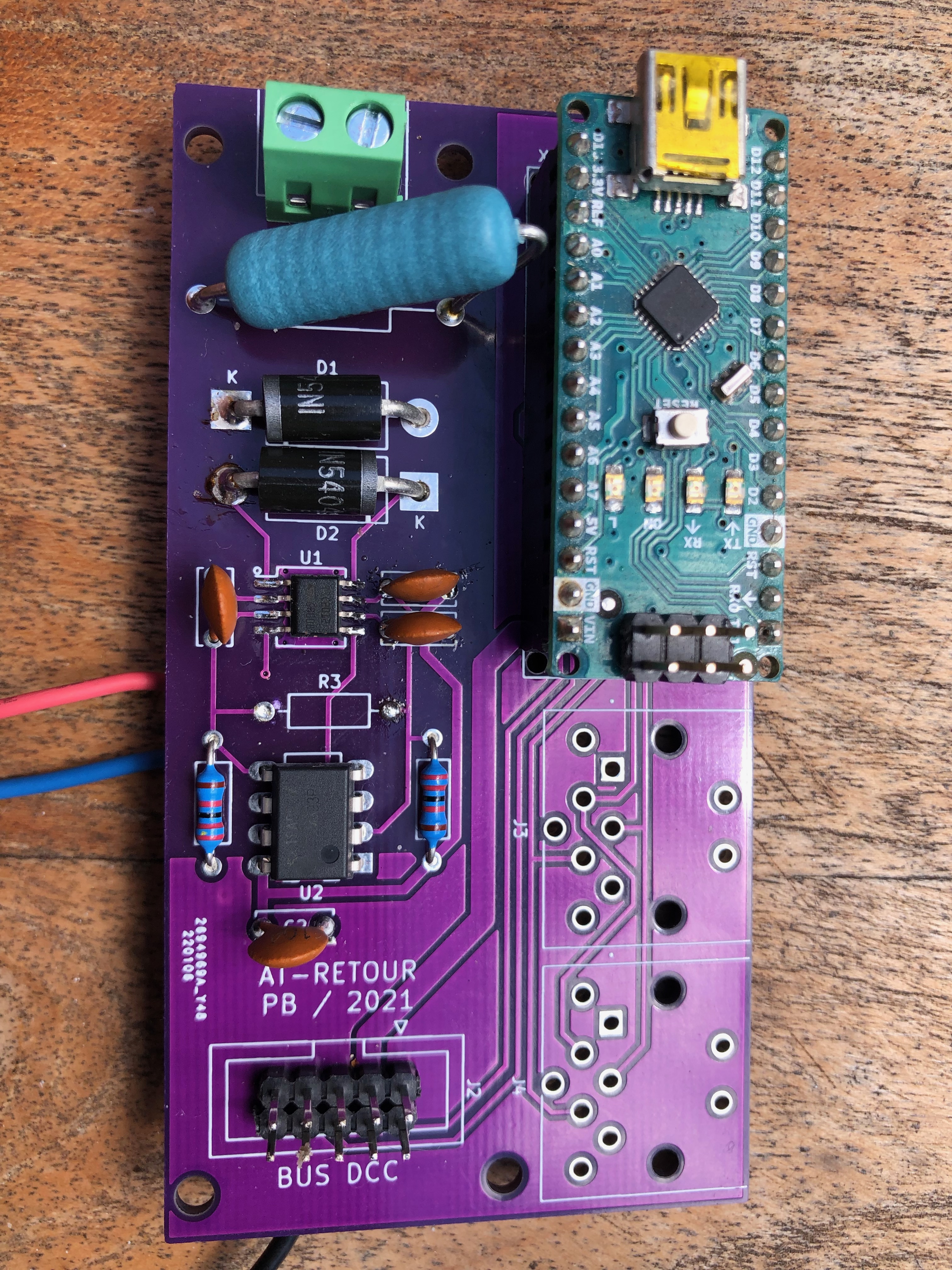 J'ai voulu reproduire la carte RailCom at-retour présentée dans votre livre (V2). J'ai fait fabriquer les PCB à partir de vos fichiers Gerber donc sans modification.