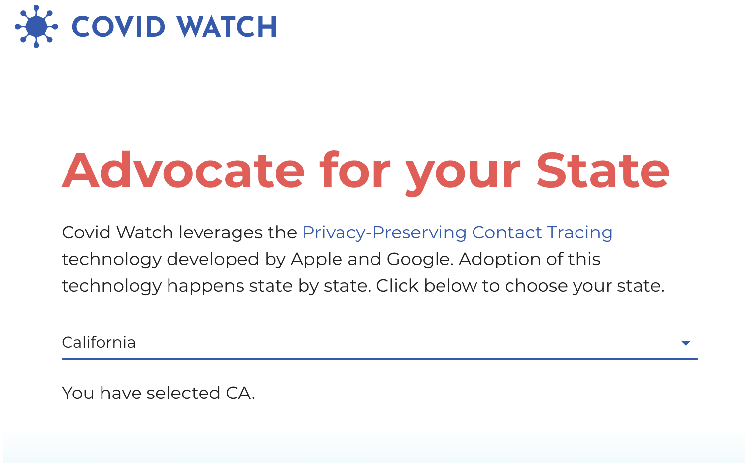Advocate page for choosing a petition specific to your state#147