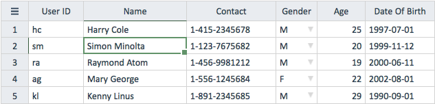 | new-if-bottom | Optional | Boolean | New record if focusing cell reach bottom |