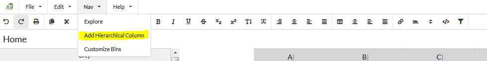 Step 1: From the menubar select Nav -> Add Hierarchical Column.