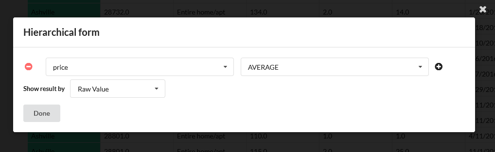 Step 2: Select the aggregation attribute and suitable spreadsheets formula. Then choose whether you want to view the results as raw text or charts.