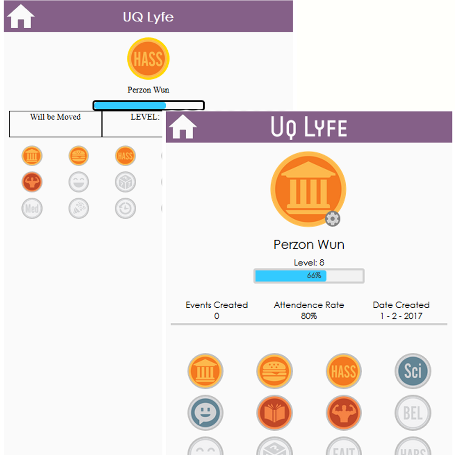 UQ Lyfe, as a platform, is being developed with the primary goal of unifying and gamifying the way that curricular and extra-curricular activity is participated in at the University of Queensland. This platform needs to appeal to both students who wish to increase activity involvement, and club leaders and teachers who wish to reach out to more people from within the UQ sphere. The application revolves around an experience and levelling system. This system is directly inspired by classic RPG (Role Playing Game) quest logs that allow players to manage what tasks are available for them to complete.