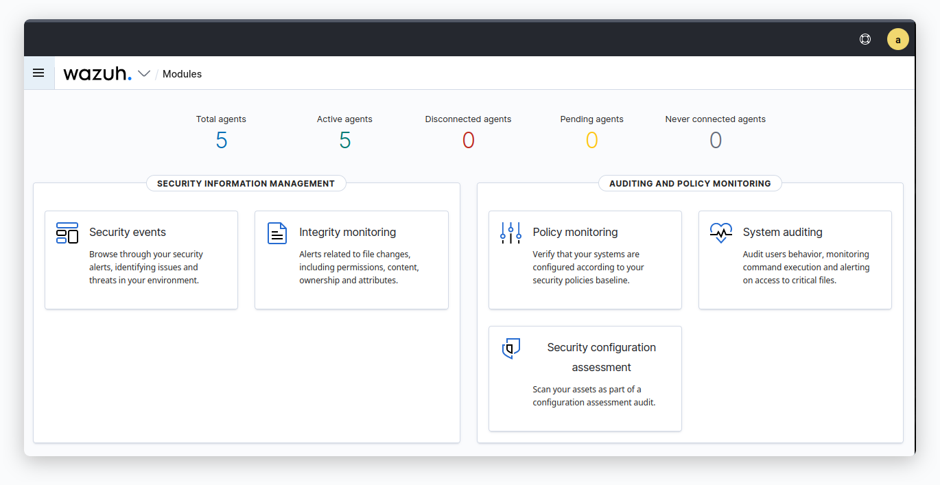 docker compose upAccess https://localhost:5601 to access Wazuh.