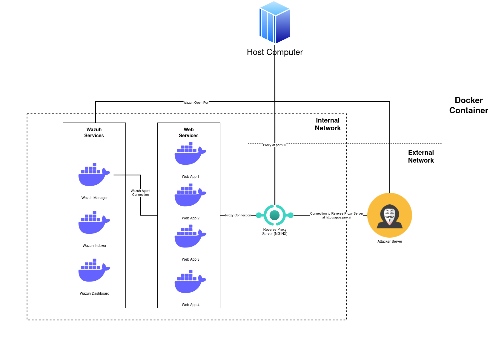 The Attacker PC is a container that we will use to simulate attacks on our services. This is where we will test the alerting system of Wazuh as an attacker/red teamer.
