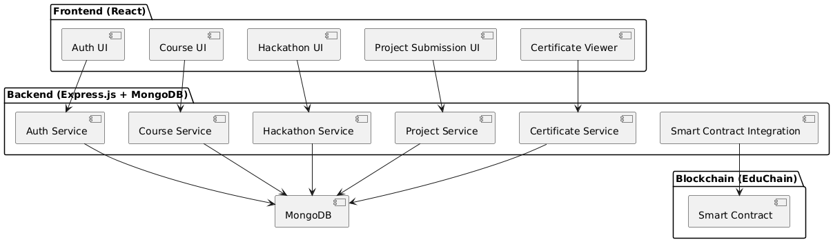 CertChain is a decentralized certificate management platform that leverages blockchain technology to ensure secure, transparent, and tamper-proof issuance and verification of digital certificates, hackathon badges, and educational achievements. It seamlessly integrates a Node.js backend, a modern React/TypeScript client, and a suite of Solidity smart contracts to automate and secure the entire certification process.